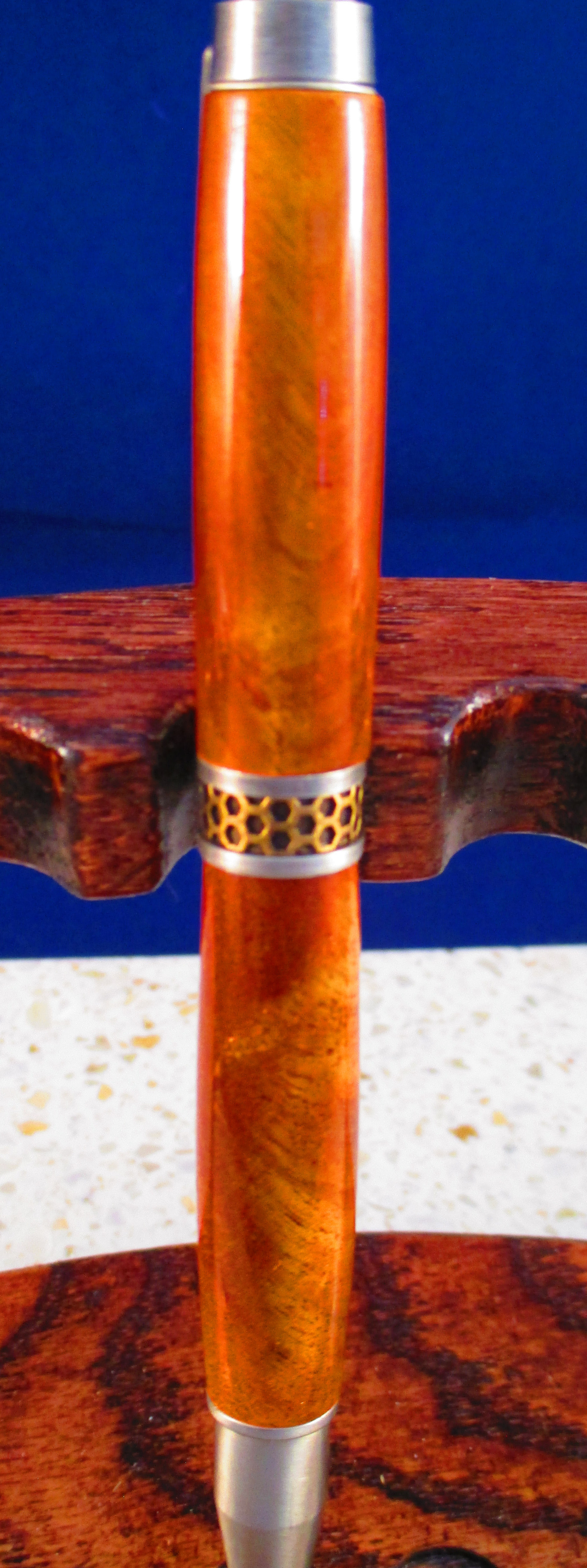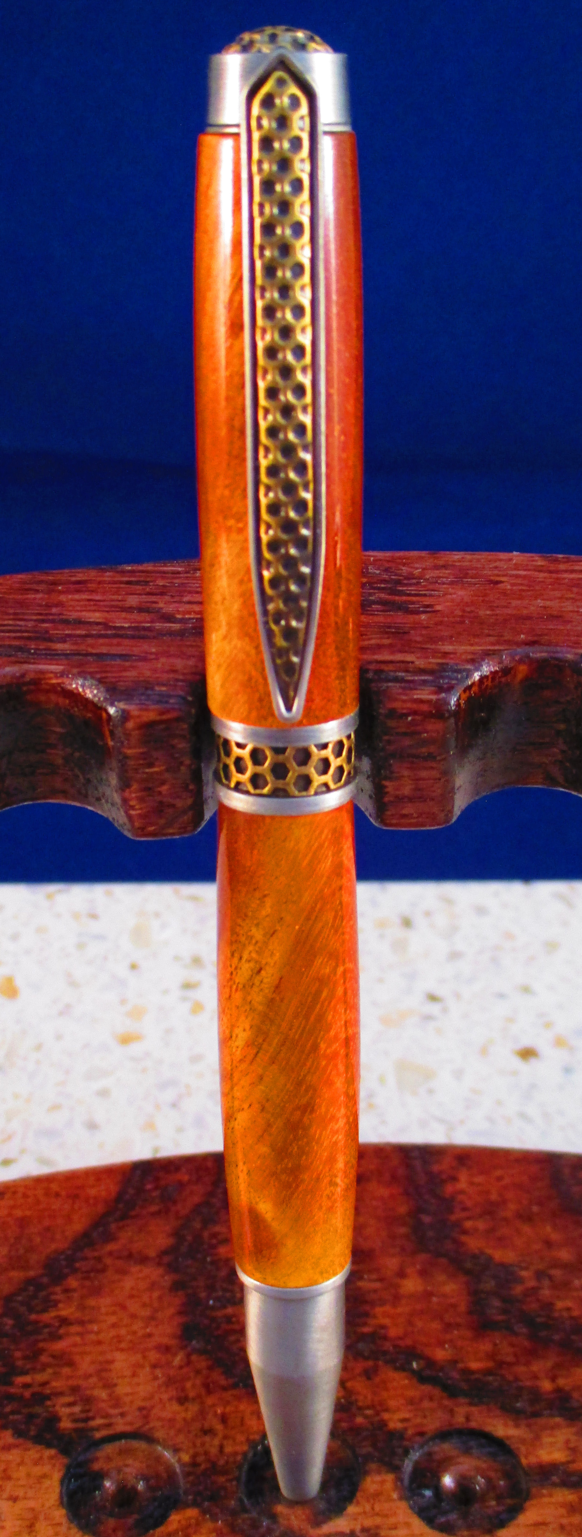 This Cherry wood pen features Pewter and brass honeycomb accents