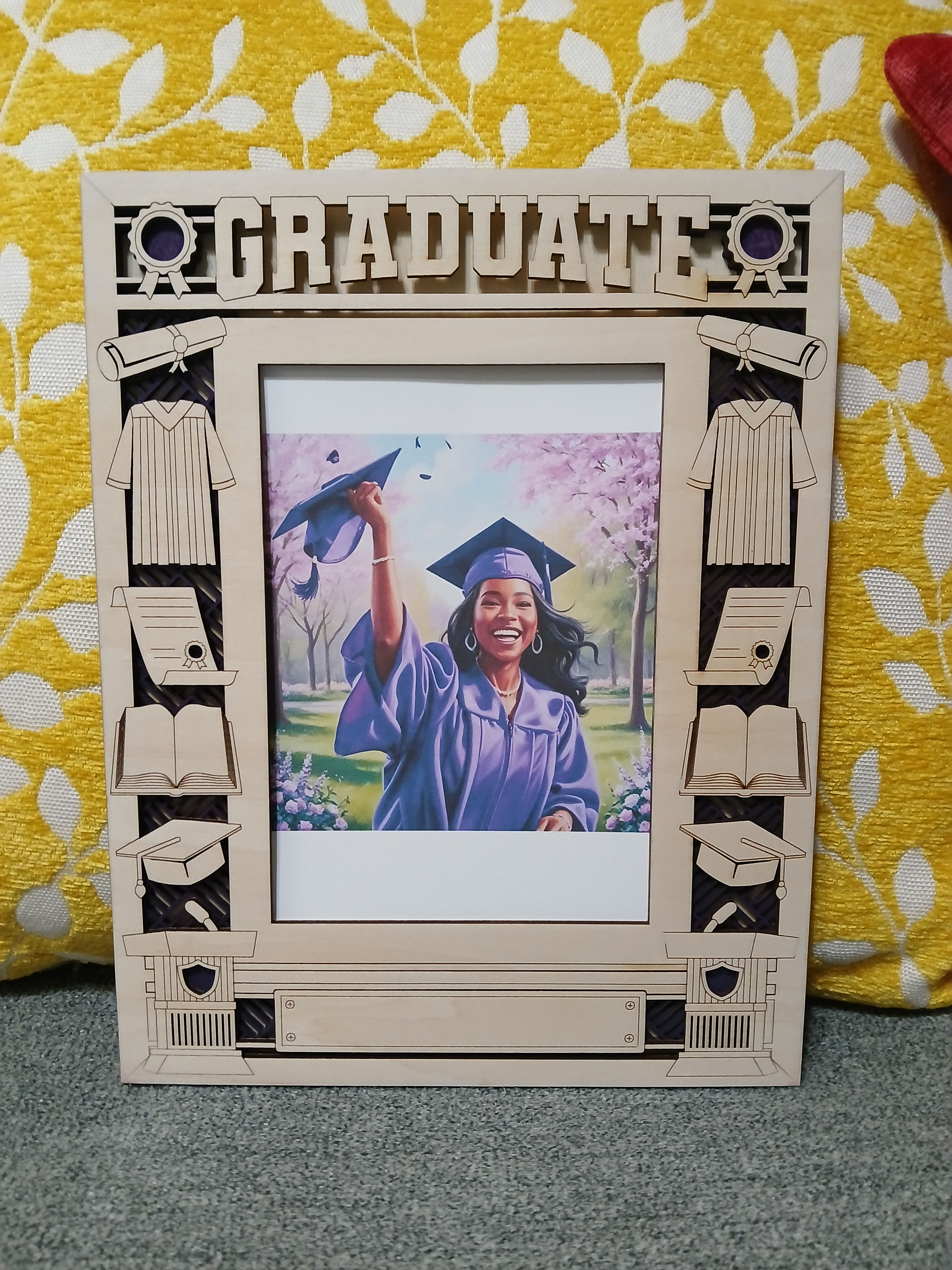 4x6 graduation frame available in landscape or portrait orientation. Color, name customization available