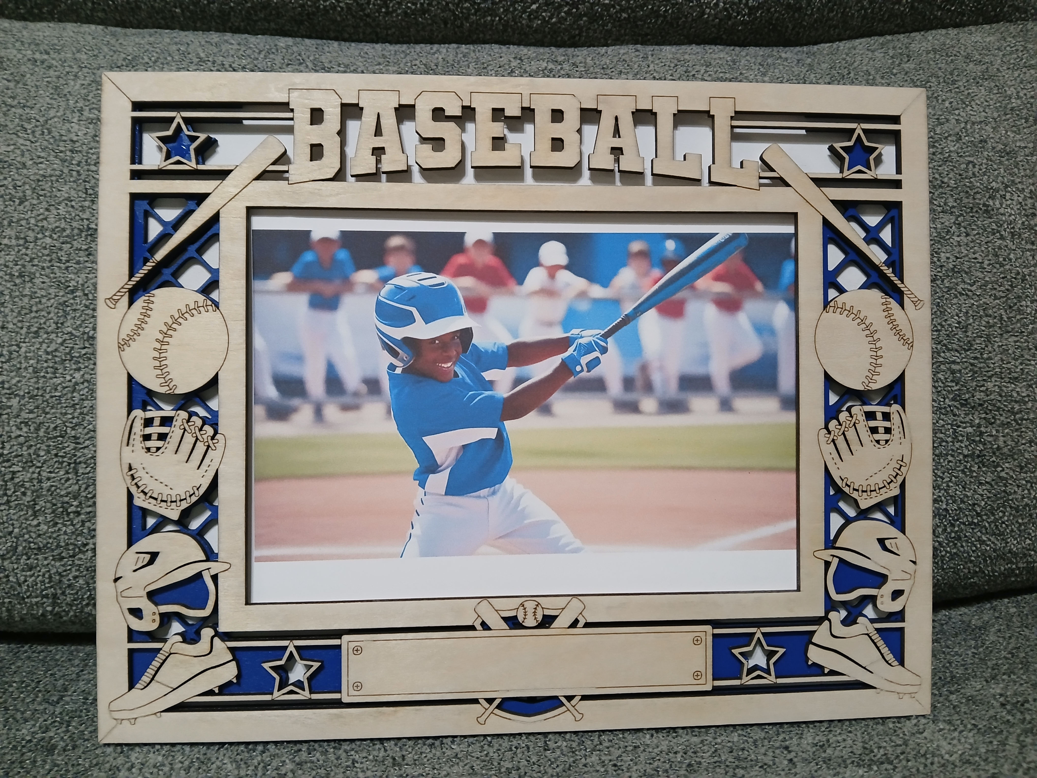 Baseball frame available in 4x6, 5x7, 8x10 in landscape or portrait orientation. Colors and name personalization available 4x6 - $20.00 5x7 - $25.00 8X10 - $30.00