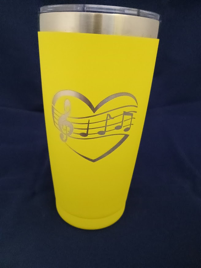 20 ounce insulated stainless steel tumbler "Heart shaped music notes"