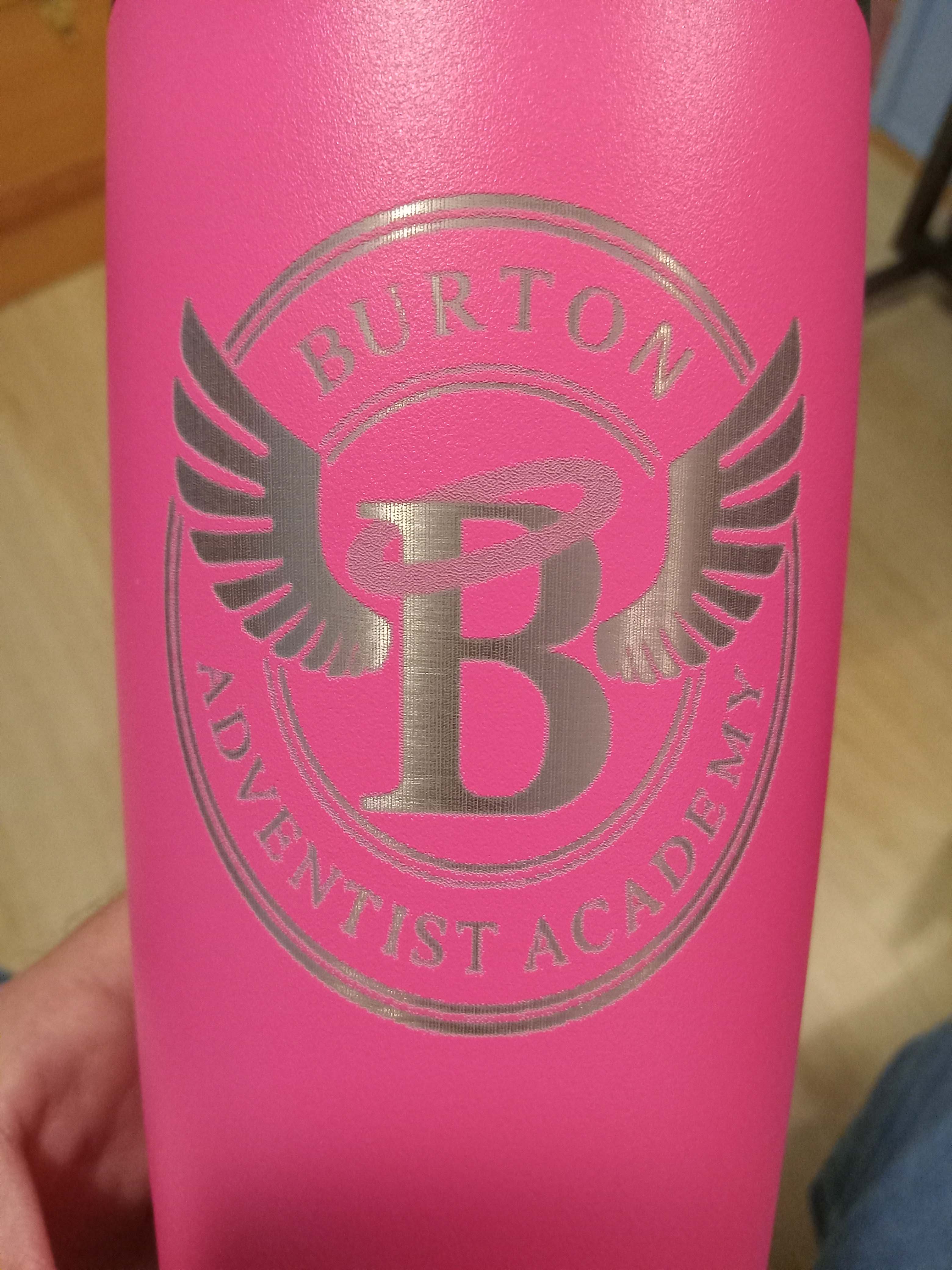 Burton SDA Academy etched on a 20 ounce stainless steel tumbler