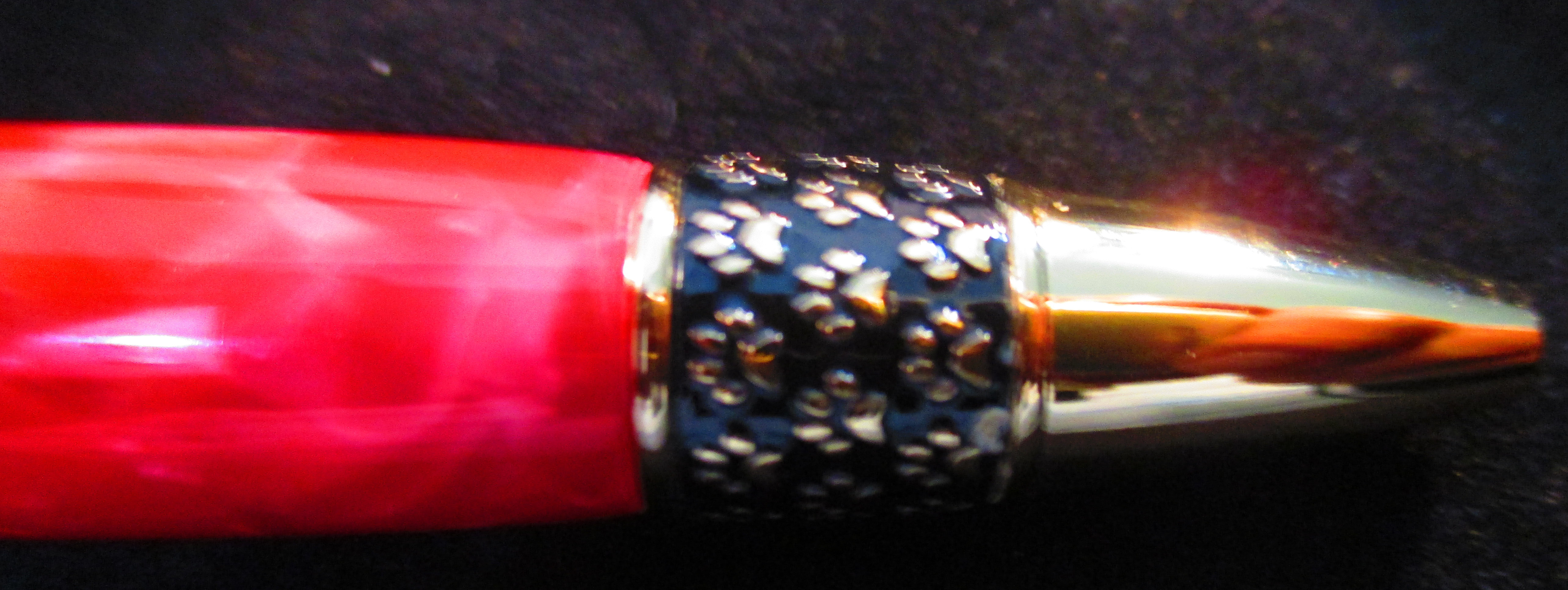 for the cat lover person, this pen is purr-fect. It features a cat curled on top and the tail becomes the clip, cat silhouettes around the center band and paw prints around the tiip.