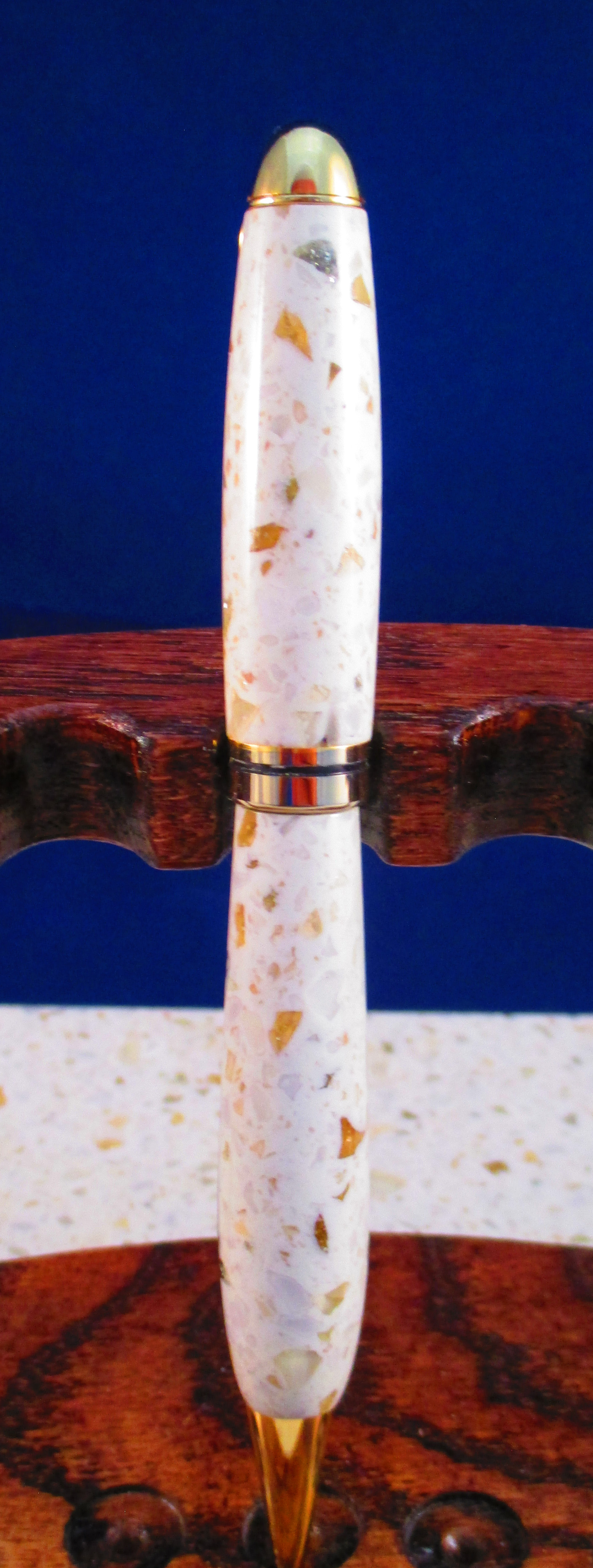 If you crossed a Penguin and an Oreo, you'd get this pen. Made with corian, the same stuff some countertops are made from