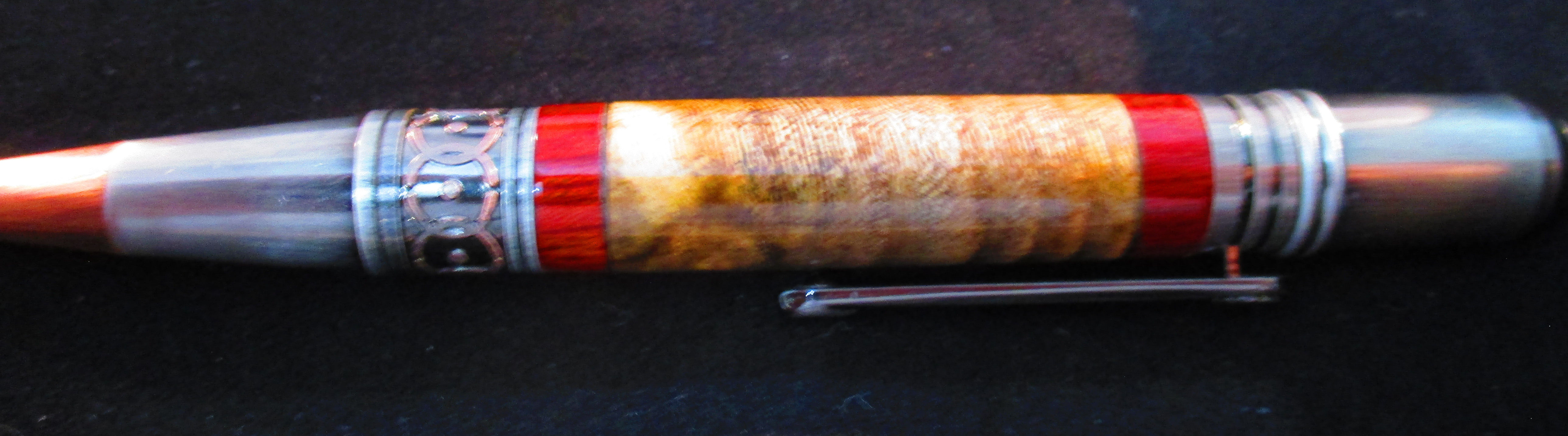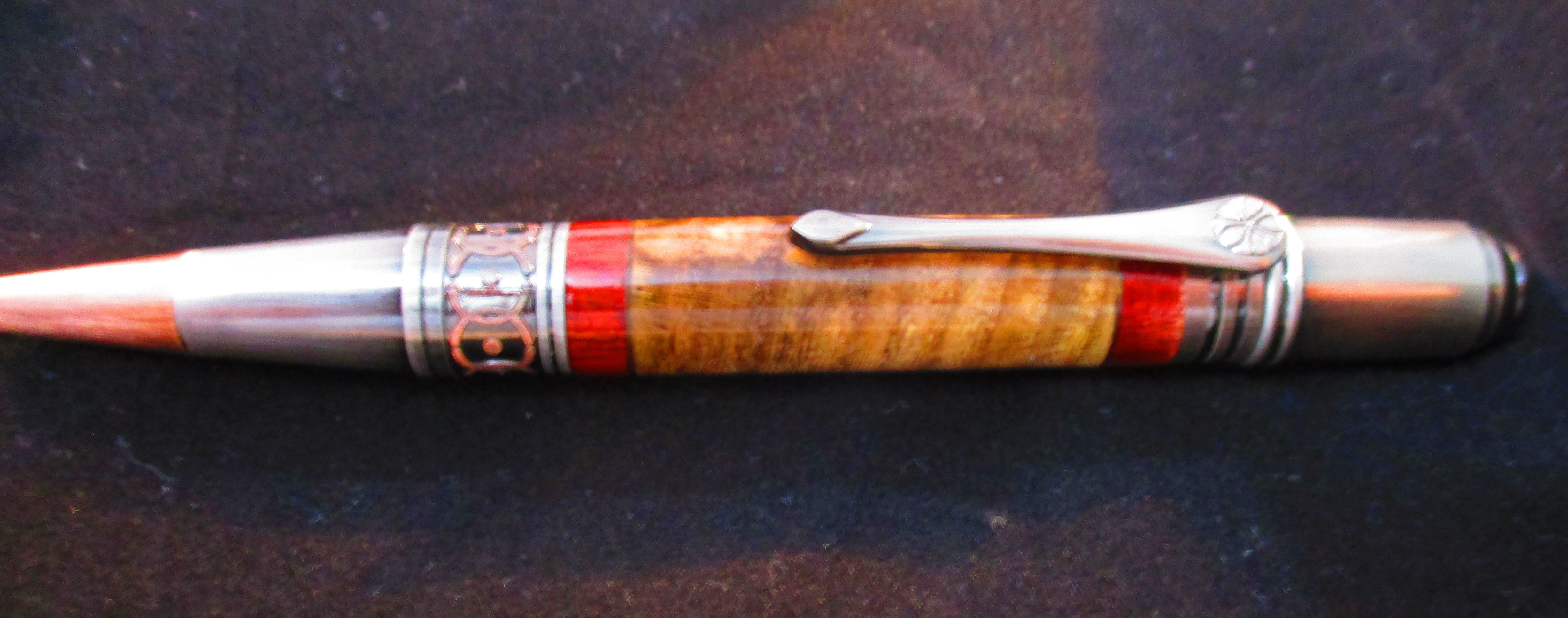 This beauty features spalted tamarind banded in bloodwood.
