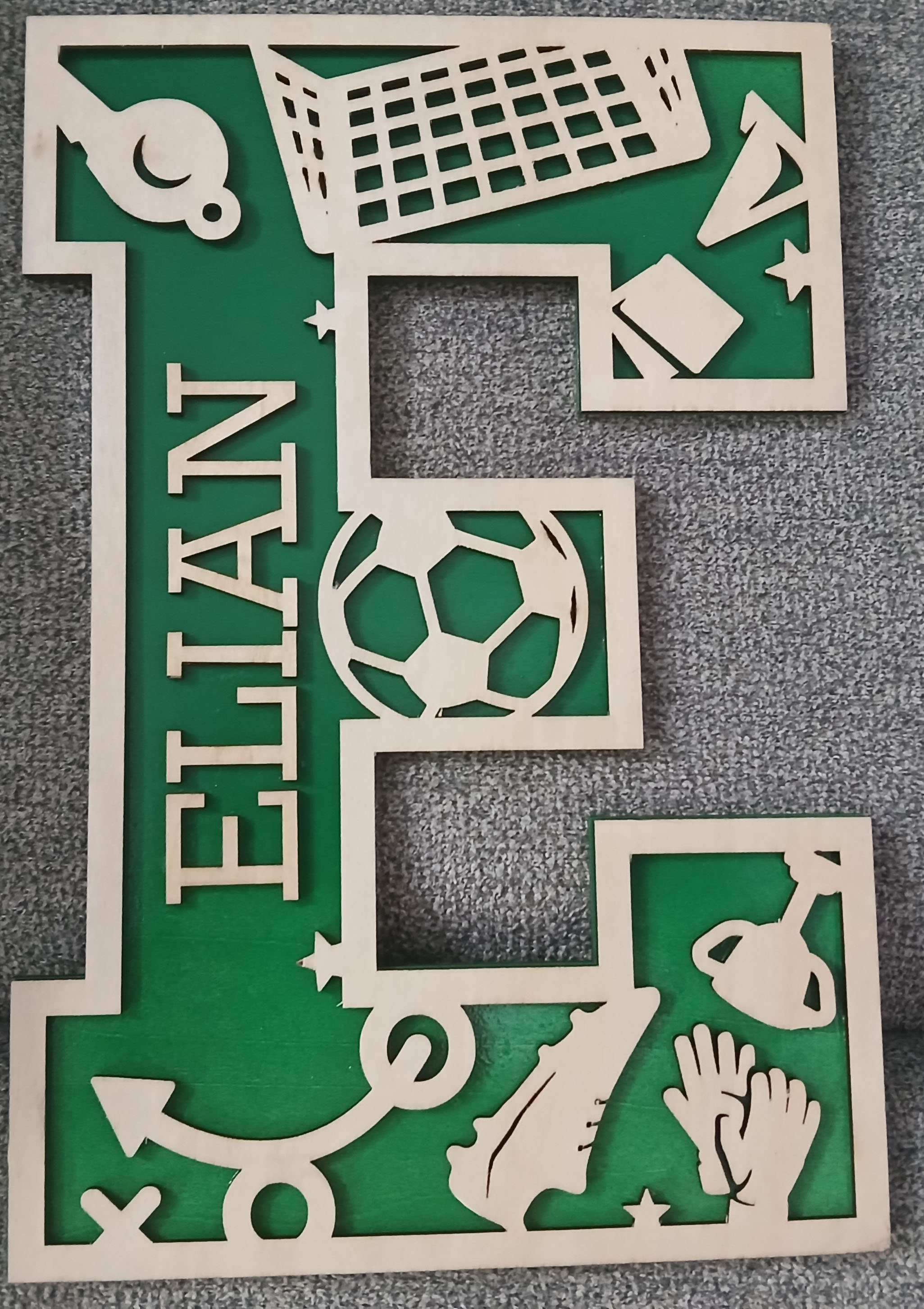 Personalized letters or numbers are available for the following sports: Baseball, Basketball, Cheerleading, Football, Hockey, Lacrosse, Marching Band, Soccer, Softball, Volleyball