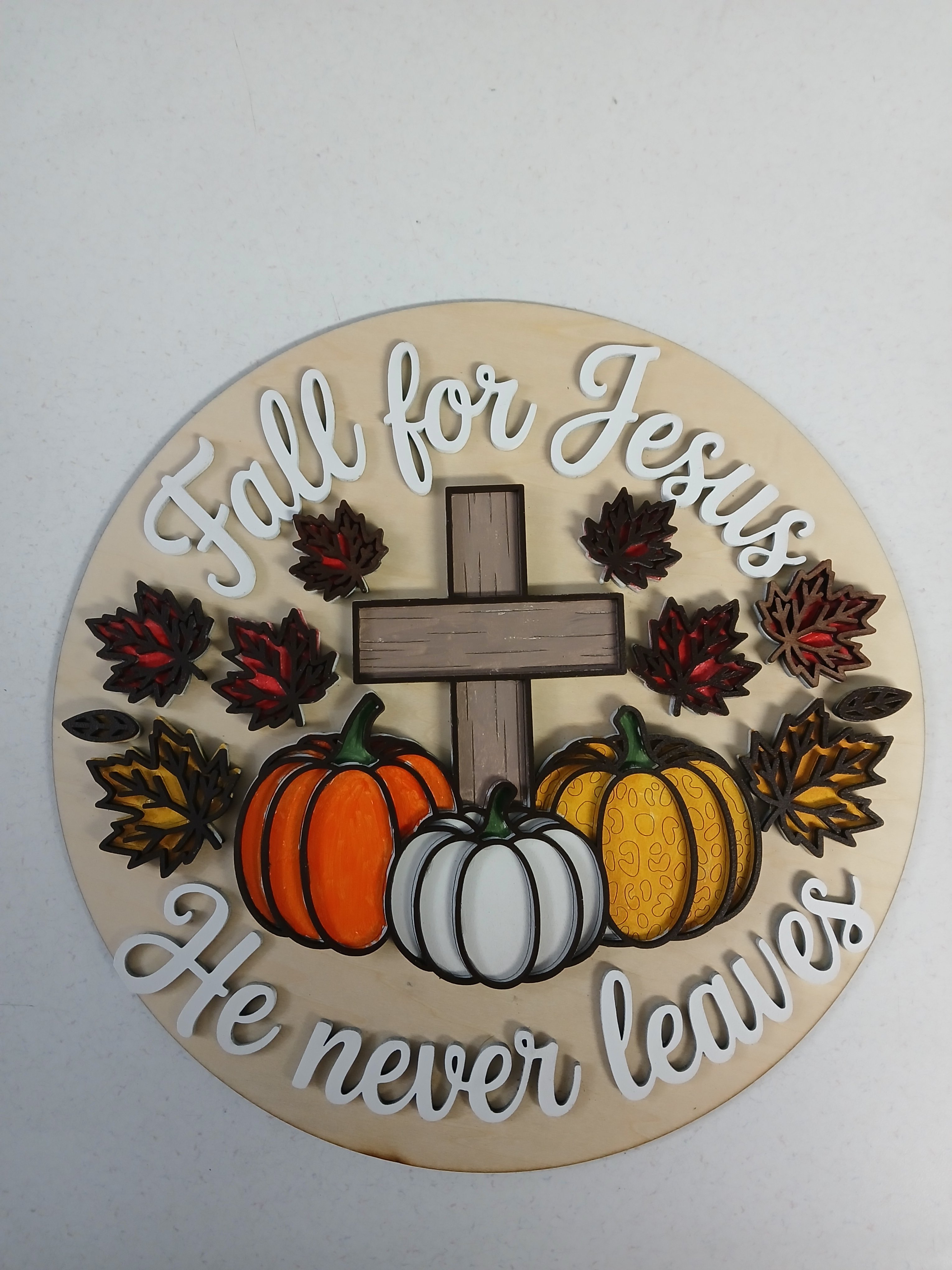 Fall for Jesus He Never Leaves door hanger